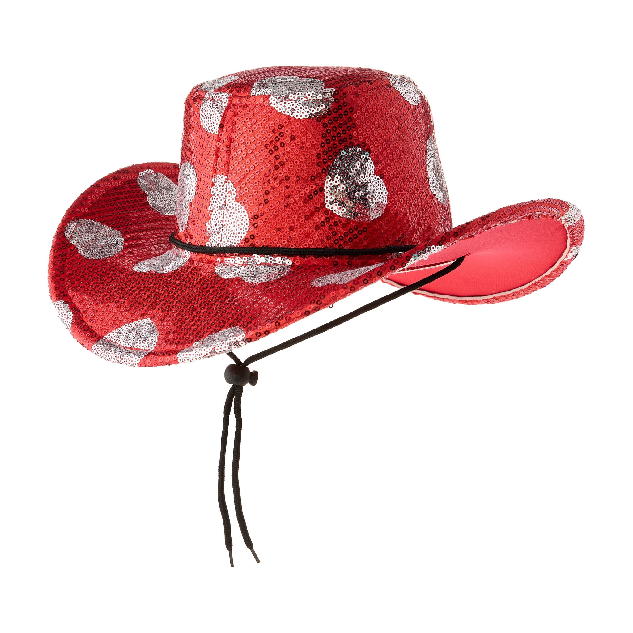 - Way To Celebrate Valentine's Day Sequin Hearts Cowboy Hat, Red and Silver