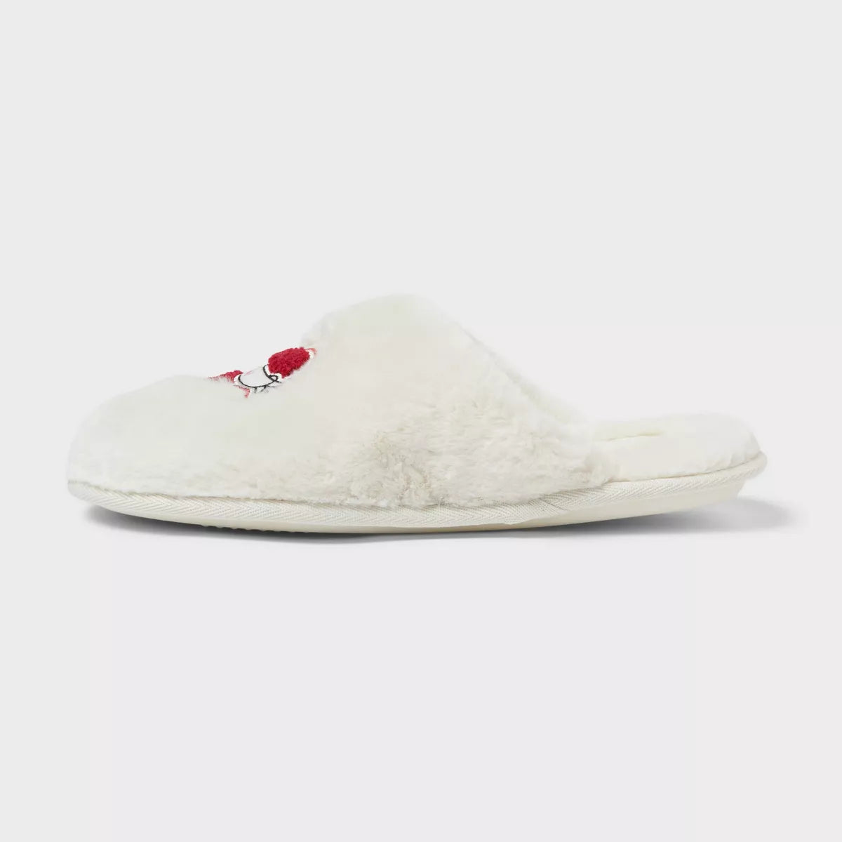 - Fuzzy scuff slippers with Valentine-themed design