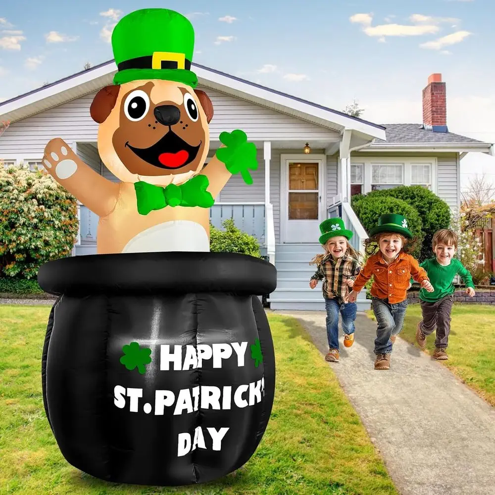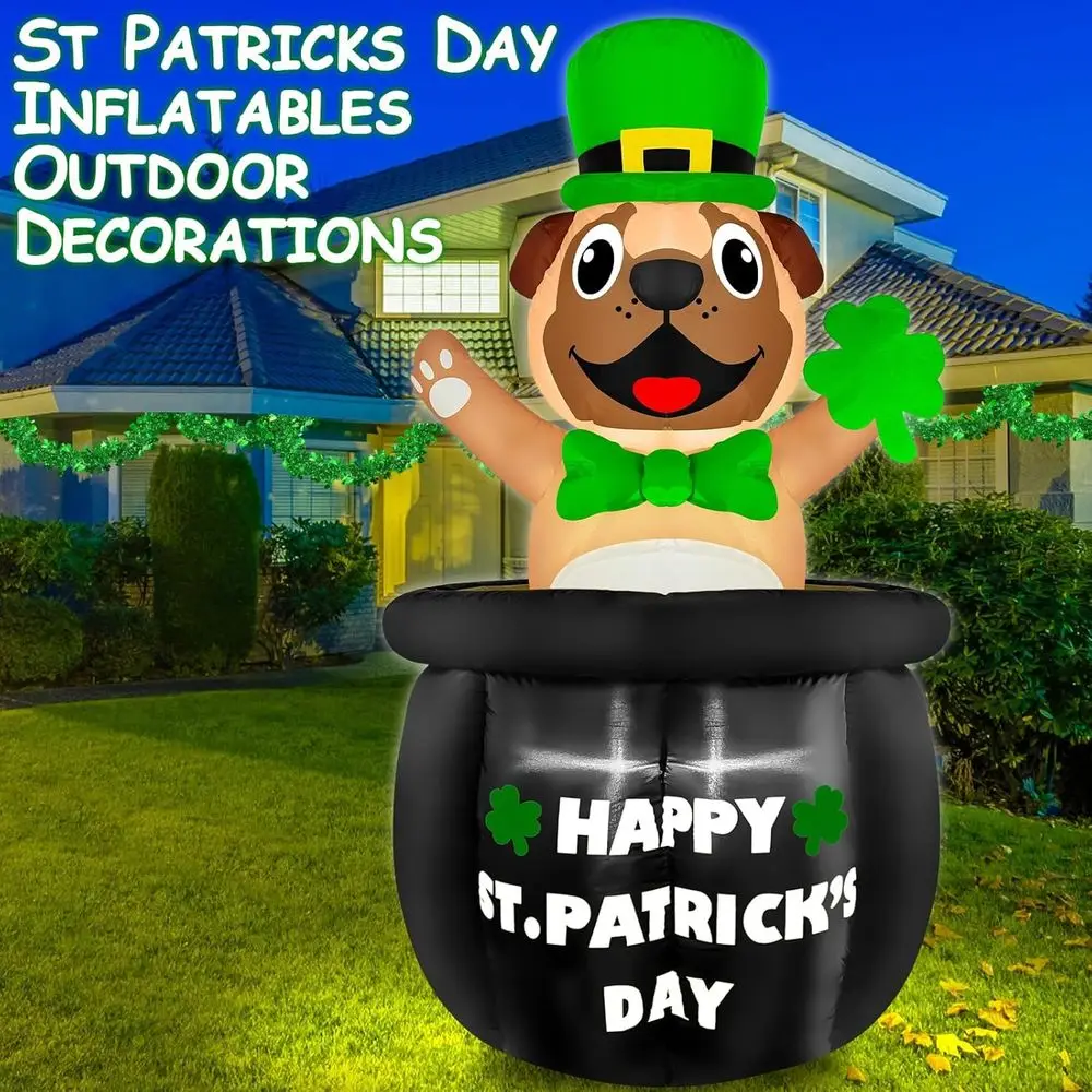 St. Patrick's Day Decoration: The bulldog in gold coin pot iatable is suitable for St patricks day decorations, yards, lawns, garden, front doors, doorways, outdoor and St. Patrick's Day parties, adding more atmosphere to your St. Patrick's Day
